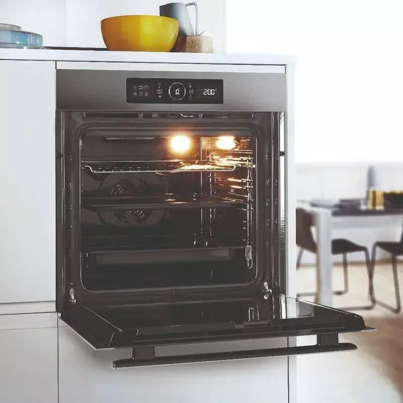 Cierre en cámara lenta. Gracias a las bisagras de cierre lento, la puerta del horno se cierra sin esfuerzo, con un movimiento suave y silencioso.