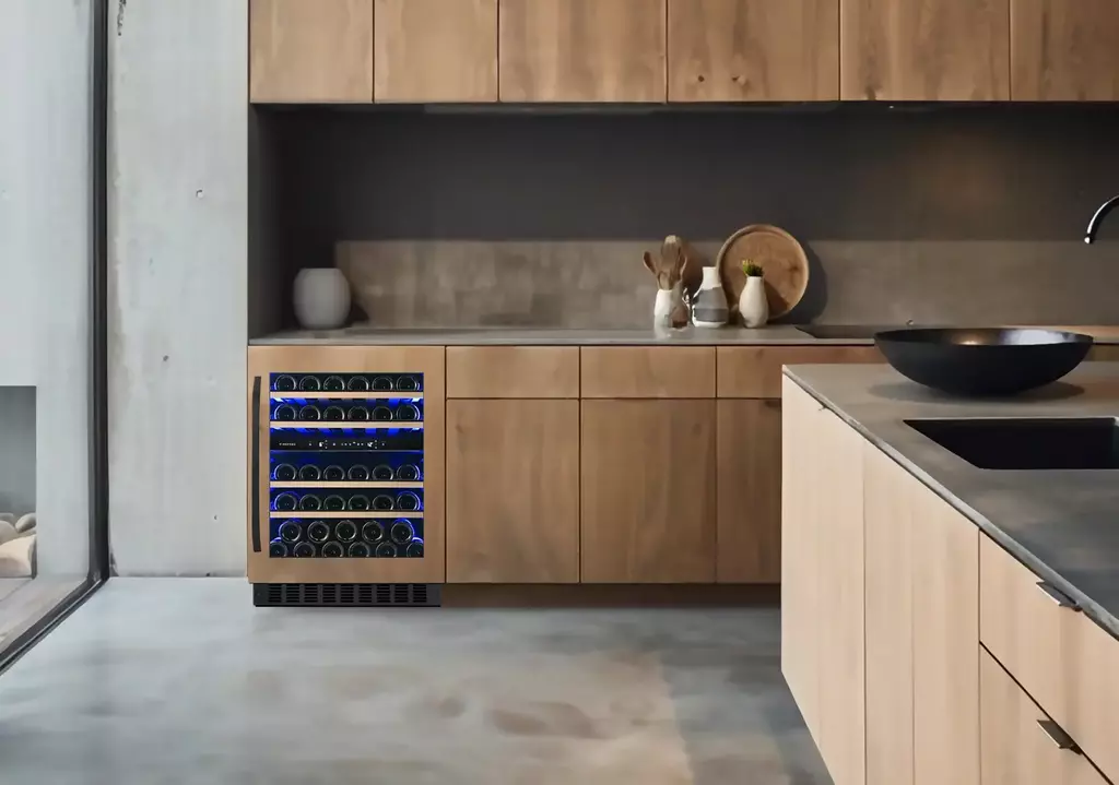Con capacidad para 39 botellas, incluye motor compresor y una puerta de doble vidrio templado con filtro UV.